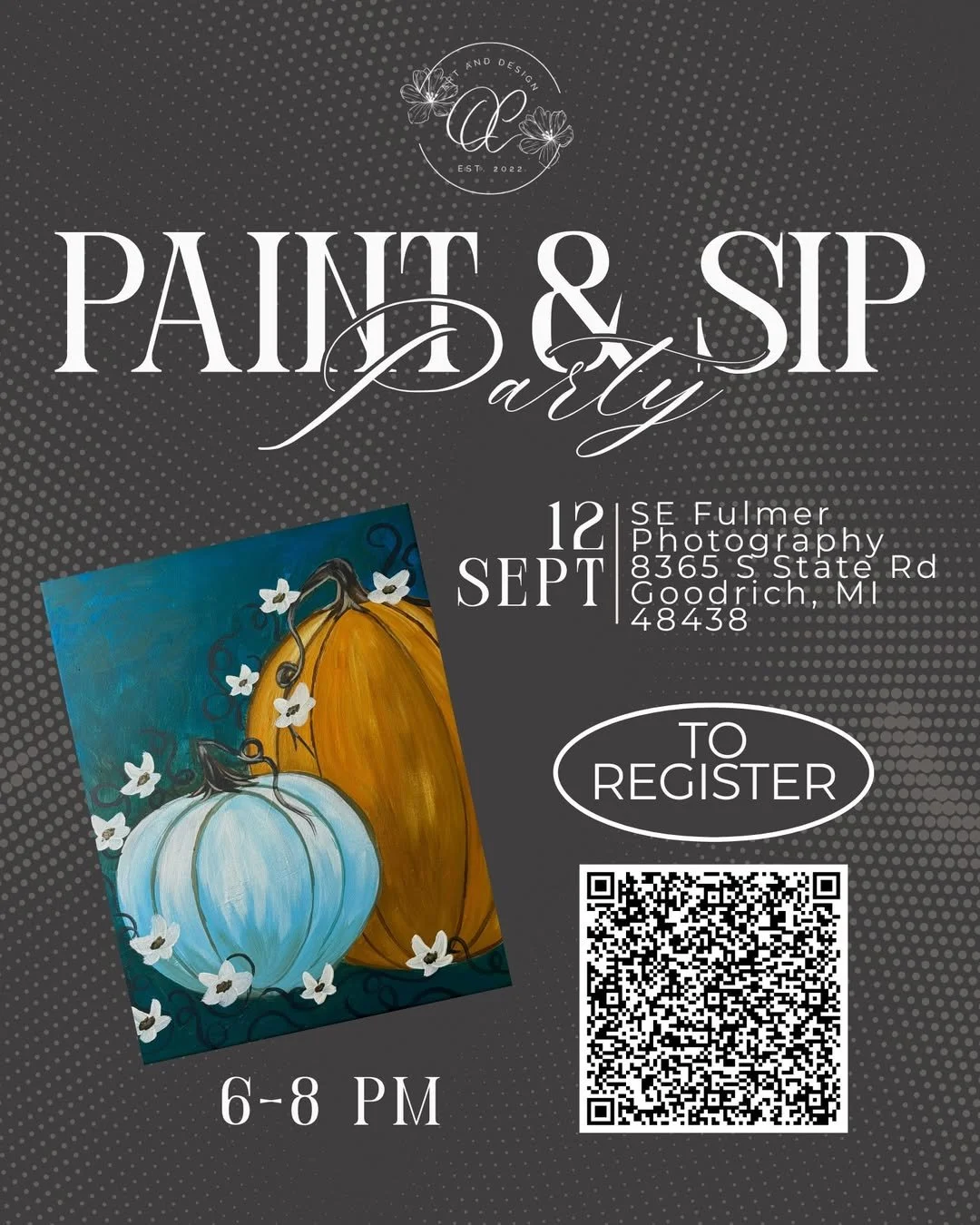 On Friday, September 12th from 6–8 PM at SE Fulmer Photography, you’ll enjoy step-by-step painting instruction, great company, and your favorite beverage.